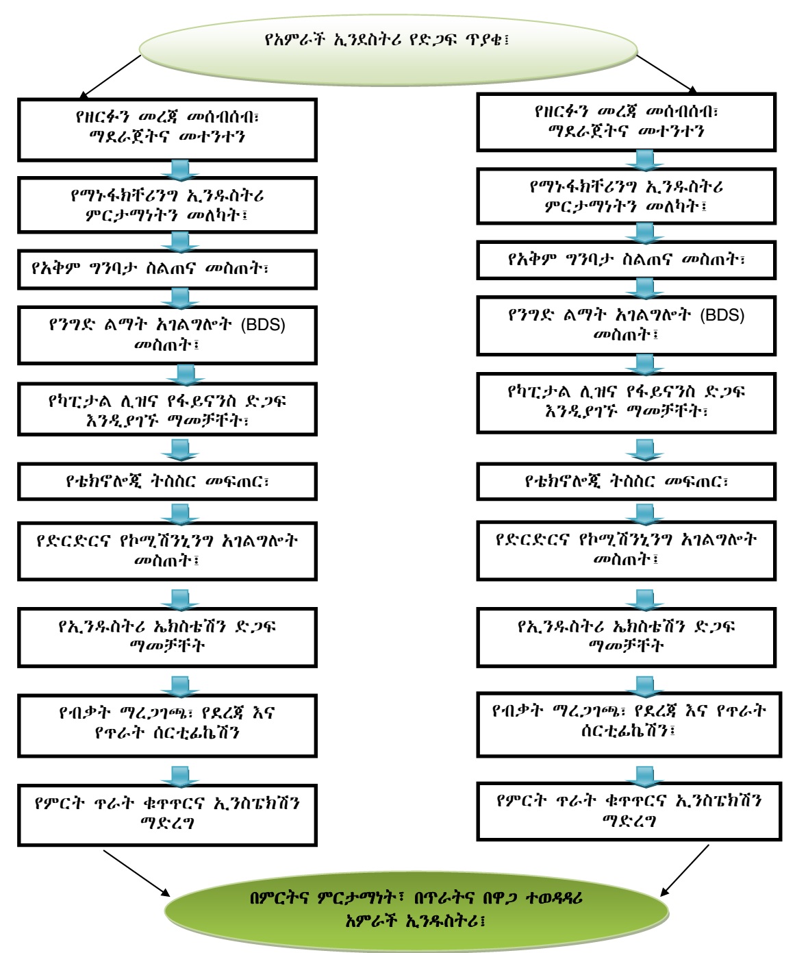 አግሮ-ፕሮሰሲንግና ፋርማሲዩቲካል ኢንዱስትሪ ልማት ዳይሬክቶሬት የወጣን ሕግ፣ ደንብ፣ መመሪያ፣ ስትራቴጂና የድጋፍ ማዕቀፍ በመጠቀም ምርትና ምርታማነትን እንዲሁም የምርት ጥራትን ለማረጋገጥ ተወዳዳሪነትን መሰረት ያደረገ አሰራርን በመከተል ገቢ ምርትን ለመተካት እና ኤክስፖርት ለማድረግ የሚያስችል የቴክኒክና ክህሎት፣ የቴክኖሎጂ አጠቃቀምና መረጣ፣ ድርድርና ኮሚሽንግ፣ በኢንዱስትሪ ኤክስተንሸን ምክርና ድጋፍ አገልግሎት በመስጠት፤ የምርት ስታንዳርድ፣ የብቃት ማረጋገጫ፣ የደረጃና ጥራት ሰርተፍኬት እንዲኖራቸዉ እንዲሁም በኢንዱስትሪዎች መካከል የእዉቀት፣ የክህሎትና የቴክኖሎጂ ሽግግር እንዲኖር ሥራዎችን ያከናውናል፡፡